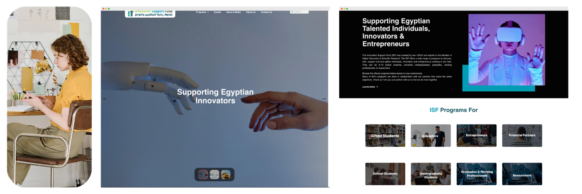 Our primary objective was to undertake a comprehensive redesign and reconstruction of the website, transforming it into a more aesthetically appealing and user-friendly platform. Our targeted audience for this revamp were the Egyptian talents and innovators, who we believe would greatly benefit from a more engaging and intuitive online experience.